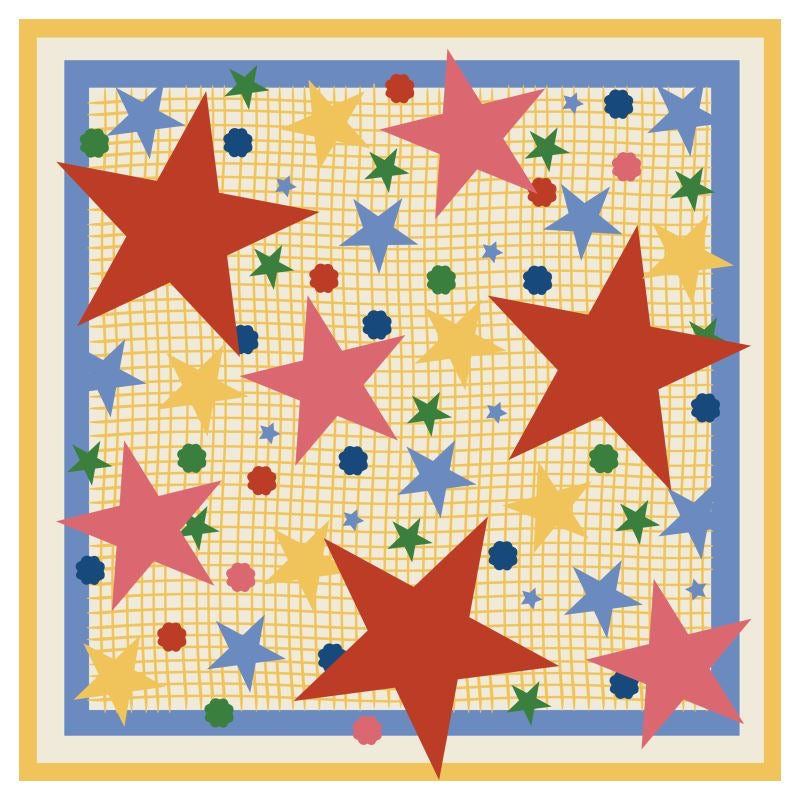 The Star Scatter print pulls from vintage motifs- grids, confetti, bold stars- but reworks them with a painterly edge and just enough bratty joy. Its roller-rink meets editorial layout, and it's designed to spark conversation before the first tile is even drawn.