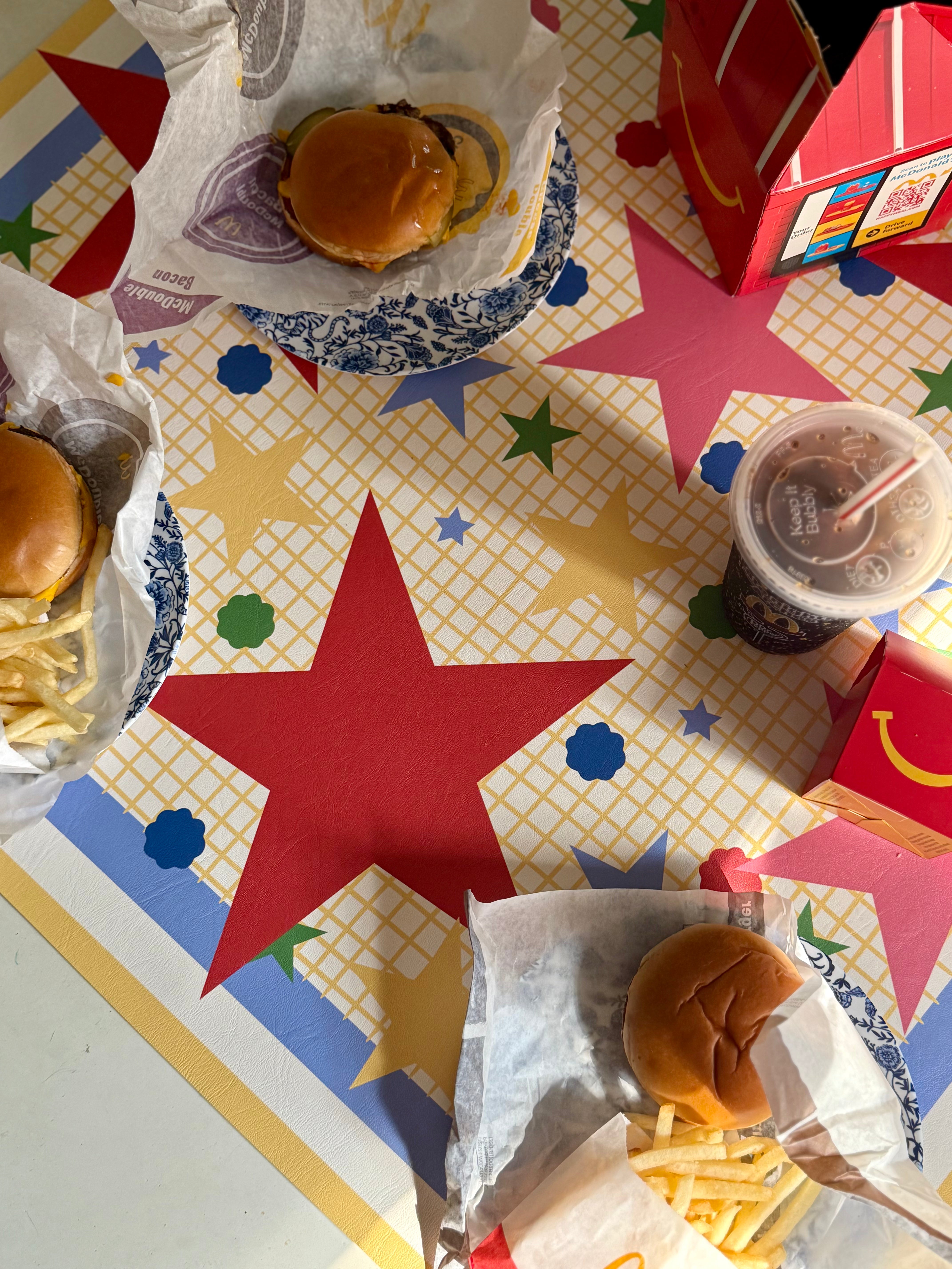 The Star Scatter print pulls from vintage motifs- grids, confetti, bold stars- but reworks them with a painterly edge and just enough bratty joy. Its roller-rink meets editorial layout, and it's designed to spark conversation before the first tile is even drawn.